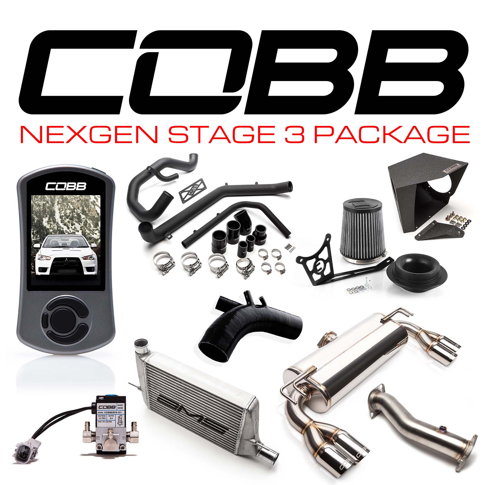 The The Accessport V3 is the world's best selling, most flexible ECU upgrade solution. Unlock power hidden within the vehicle by replacing conservative factory settings with more aggressive calibrations. Coupled with the full compliment of COBB bolt-on parts, your Evo X will be taken to an entirely new level!