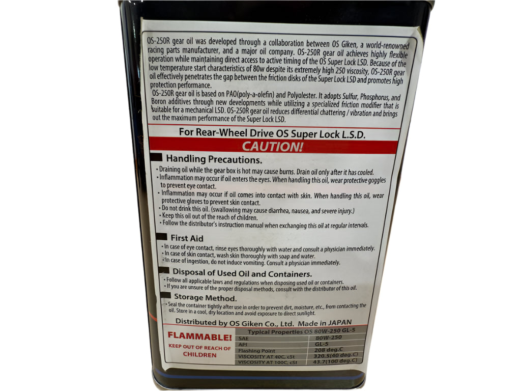 Our OS-250R gear fluid is a specially formulated synthetic gear oil that contains the proper amount of gear oil and limited slip additive for LSD protection and reliable locking performance for our RWD applications (currently, OS-250R is not recommended in transaxle applications). With that being said, we have had success using a select few non-OS fluids in regards to protection. Please see our current list below:
